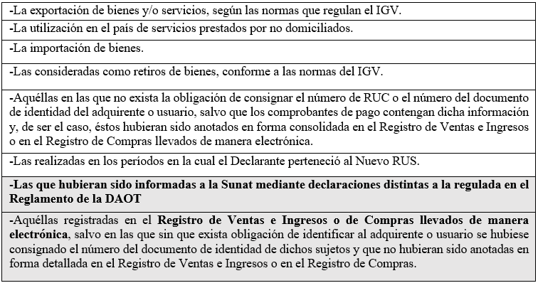 La DAOT (“declaración anual de operaciones con terceros”) es una declaración informativa de periodicidad anual, que tiene el carácter de declaración jurada, cuyo propósito es informar las operaciones del contribuyente (sujeto declarante) con terceros con los que se relaciona (proveedores y/o clientes) y se regula por la R.S. N° 024-2002/SUNAT y modificatorias.
