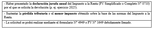 1. Requisitos para solicitar la devolución del saldo a favor del Impuesto a la Renta