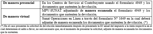 2. Medios para presentar la solicitud de devolución