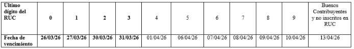 • Principales contribuyentes y no inscritos en el RUC: hasta el 10 de junio de 2026.